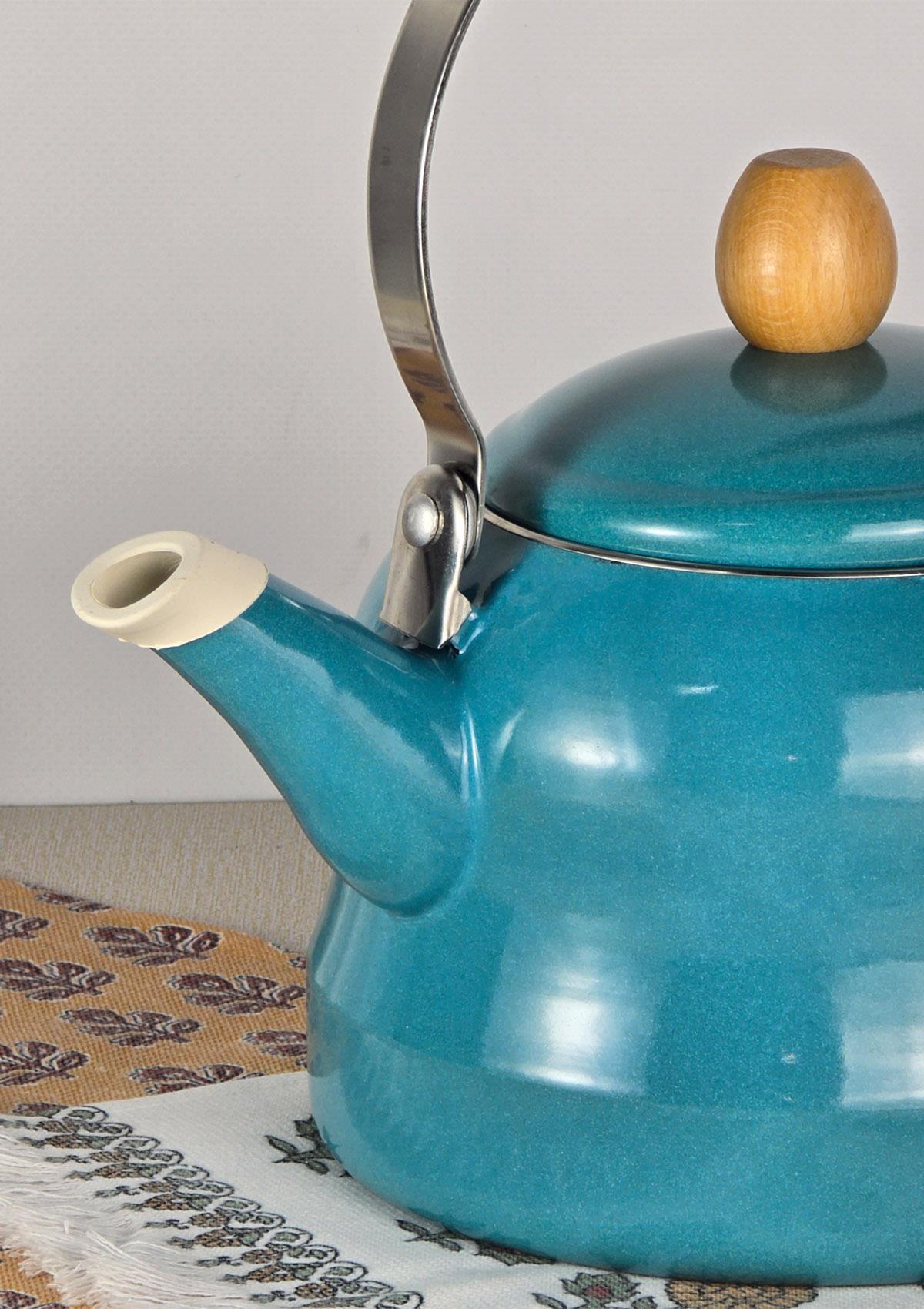Alev Vintage Demlik - Ahşap Saplı Emaye Çaydanlık, Kettle - 2.5 Litre