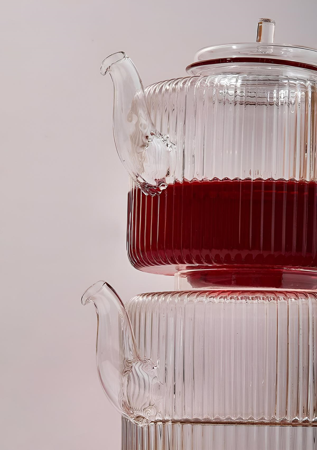 Borosilikat Cam Çaydanlık Seti - Çizgili Çaydanlık Takımı - Orta Boy - Ateşe Dayanıklı