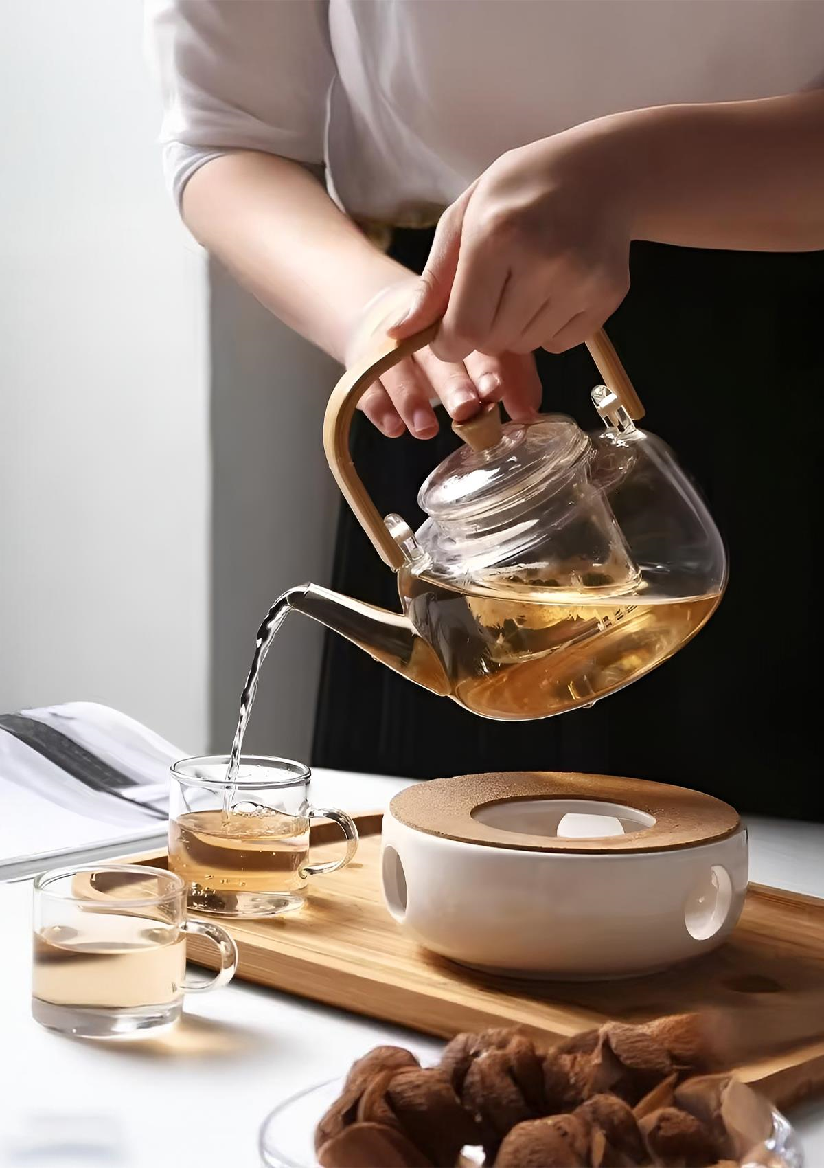 Borosilikat Cam Demlik - Bambu Kulplu Bitki Demliği - Isıya Dayanıklı 800 ML