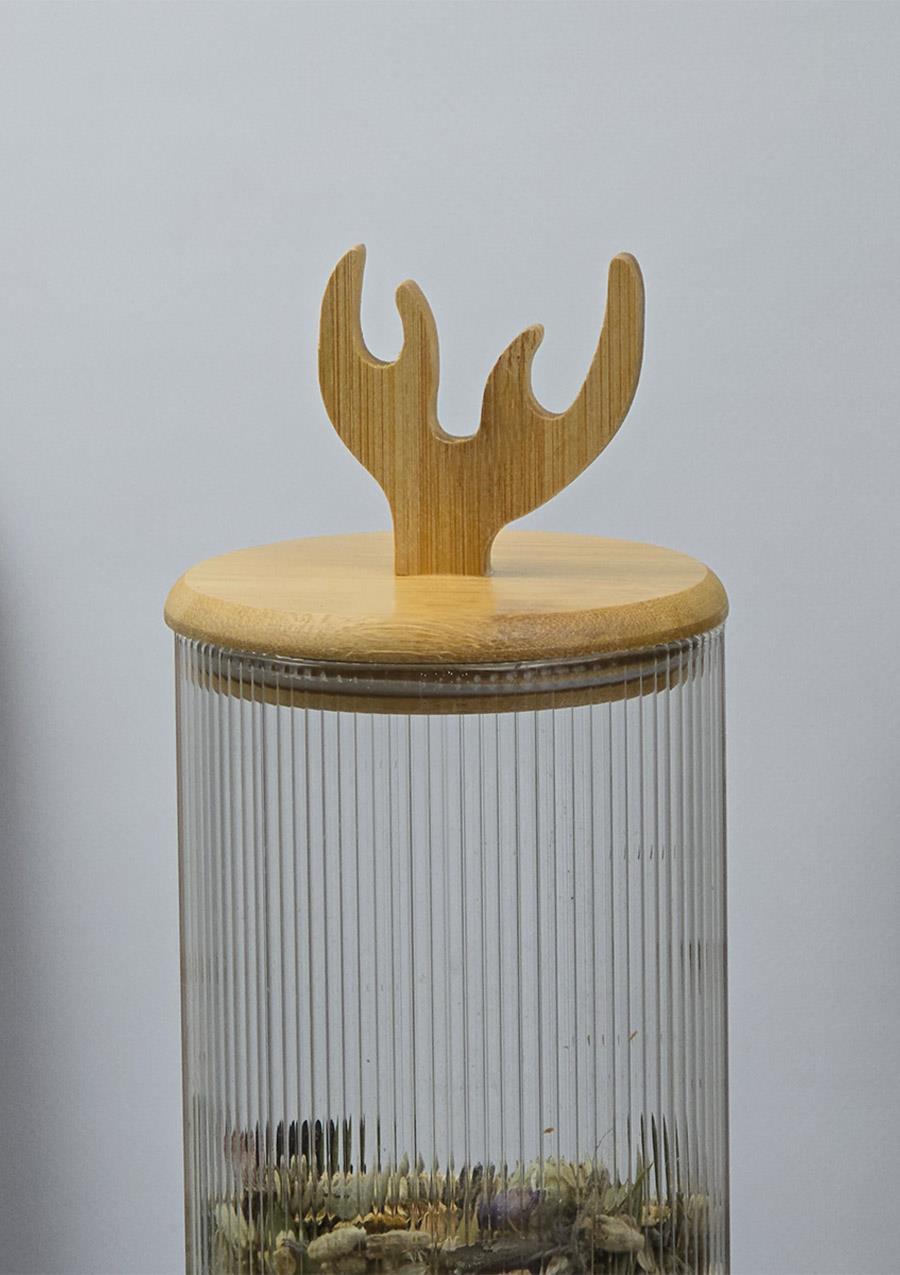 Hometarz Boynuz Desenli Cam Kavanoz - Bambu Kapaklı Borosilikat Cam Kavanoz