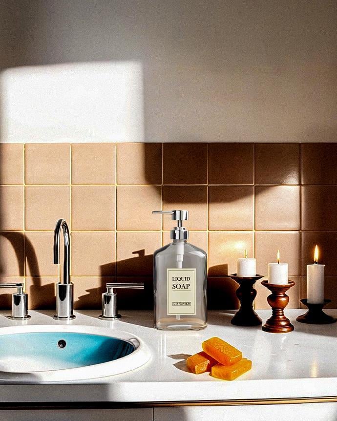 Cam Sıvı Sabunluk - Dekoratif Büyük Boy Dispenser - Kalın Cam - 500 ML