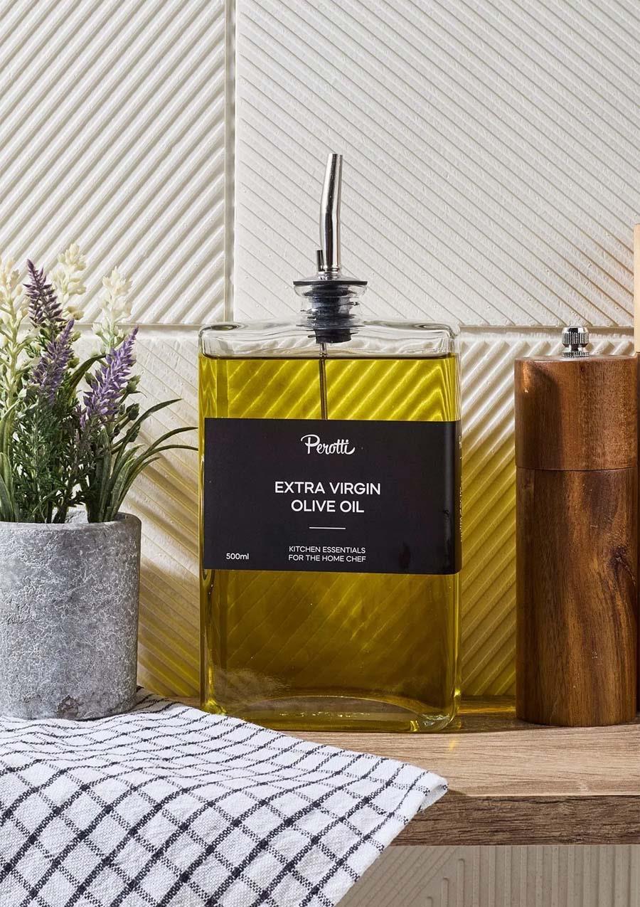 Cam Yağdanlık, şık gümüş başlığı ve zarif tasarımıyla mutfaklarınıza estetik bir dokunuş katıyor.