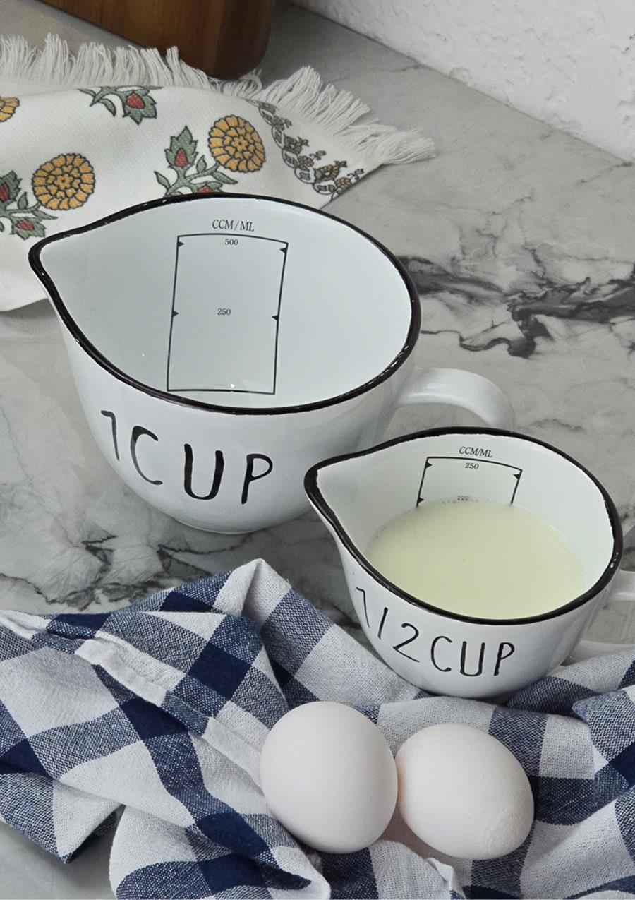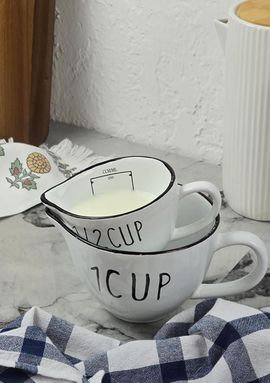 Loza 2li Ölçü Kabı Seti - Porselen Ölçüm Bardağı Takımı - 2 Parça (KRD-0072)