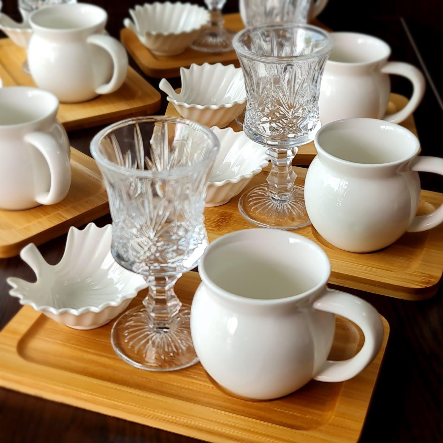 Porselen Kahve Fincan Takımı 24 Parça Set 6Lı Bambu Sunumluk Seti (HOMETZ-İSTİRİDYE)