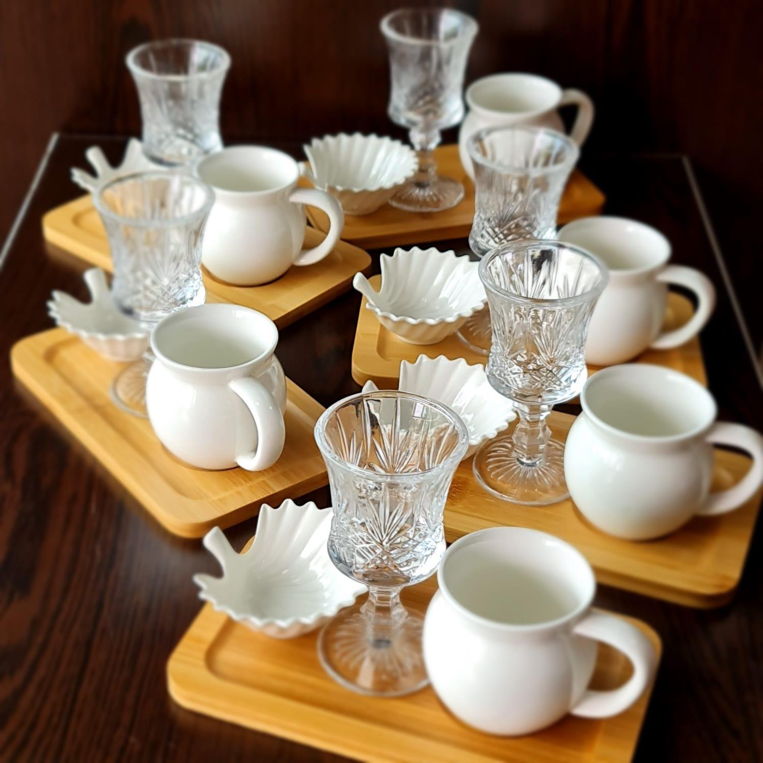 Porselen Kahve Fincan Takımı 24 Parça Set 6Lı Bambu Sunumluk Seti