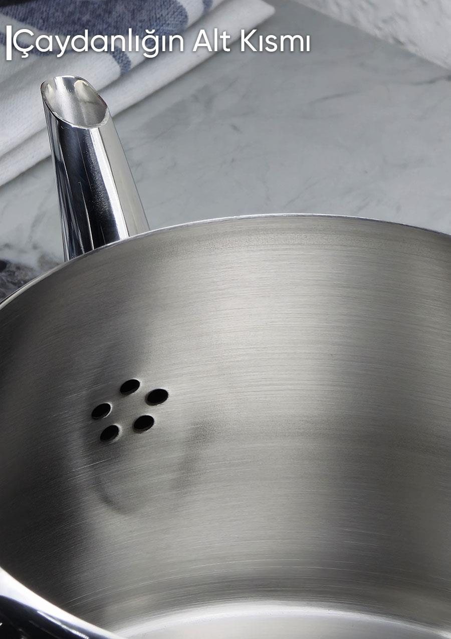 Regno Çaydanlık Seti - 304 Paslanmaz Çelik Çaydanlık Takımı - 4.5+2.5 L (TR-4589)