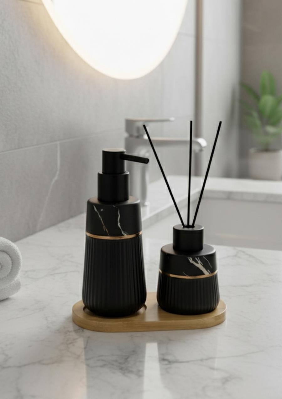 Seramik Sıvı Sabunluk Seti - Kokuluklu Sabunluk Takımı - (HOMETZ-17068-Siyah-)