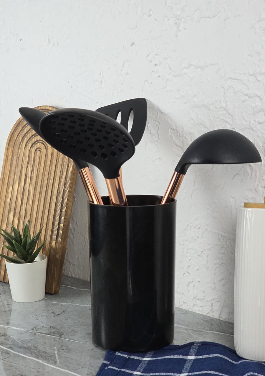 • Set İçeriği: Servis Kaşığı, Spatula, Kevgir, Kepçe ve Dikey Stant