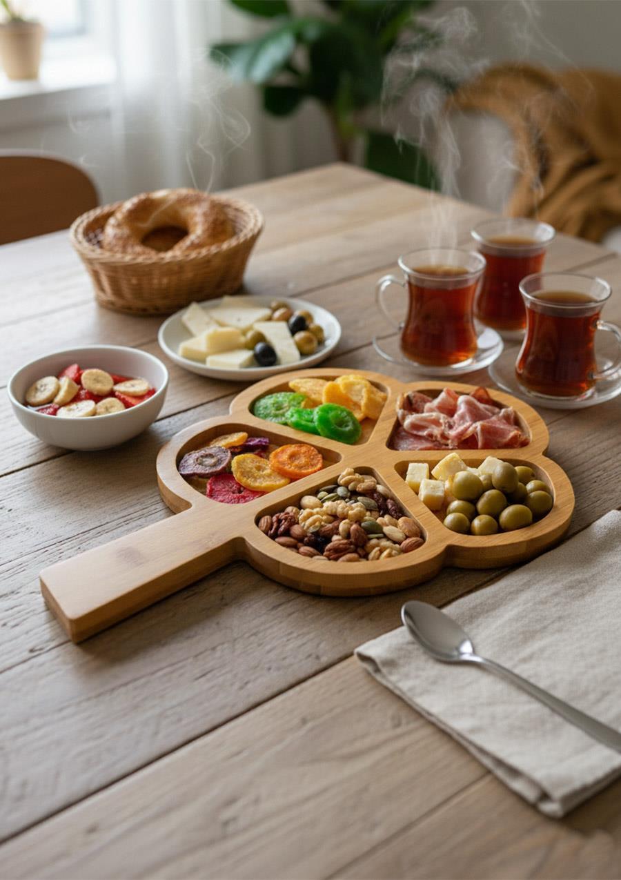 Yonca Bambu Sunumluk Tabak ile sofralarınızı hem işlevsel hem de dekoratif bir şekilde tamamlayın.